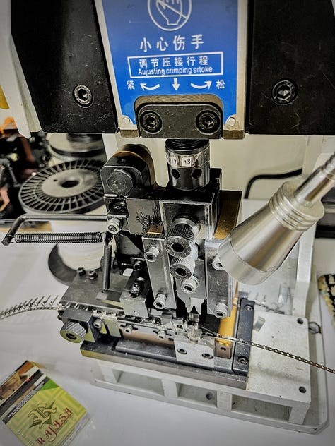 在印尼辦這門生意的難度,在於所有原材料和機器,都得從中國入口。「自從參加了這工作之後,我才真感受到印尼工業的落後,」Nazer告訴我,「這些切線材的機器並不複雜,但印尼就是沒有出產這樣的機器。」其他國家像是日本、德國都有更精美的同類儀器,但唯獨從中國淘寶進口的,他們才買得起。