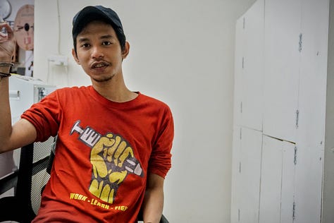 這一次我沒有上農村,一直留在市區。首先接待我的朋友是Rizal,我們早在2018年就在香港認識。那年,他在一個香港NGO實習,正好遇上海麗邨工人的罷工。我們算是同代人,但他是90後。他是印尼大學的畢業生,是典型自學生時代起就活躍在左翼運動的進步青年,現在已是某種「老鬼」。他專研棕梠種植園的勞工問題,讀書時到園區裏待著做組織和調查,現在已經領著一個NGO網絡持續關注議題。