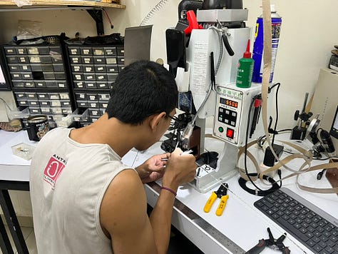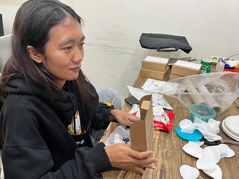 社運仔女為組織的生計搞起合作社,不是新鮮事。但他們不是開書店Cafe,而是搞出口加工製造業,於我而言就算新奇了。在社內,六個成員以Rizal為首,每在就在工場回應客戶問題、裁切電線、管理原料入口和社交媒體、在Raddits 看評價。Rizal是合作社的發起人,原初他只是對這門手藝有興趣,自己在閒時當手工藝製作線材在Etsy出售,豈料殺出一條血路,他在平台賺到的收入好快就超越在NGO工作的薪水。於是他把心一橫,聊其他社運仔加入,由個人手工作坊擴大成合作社。