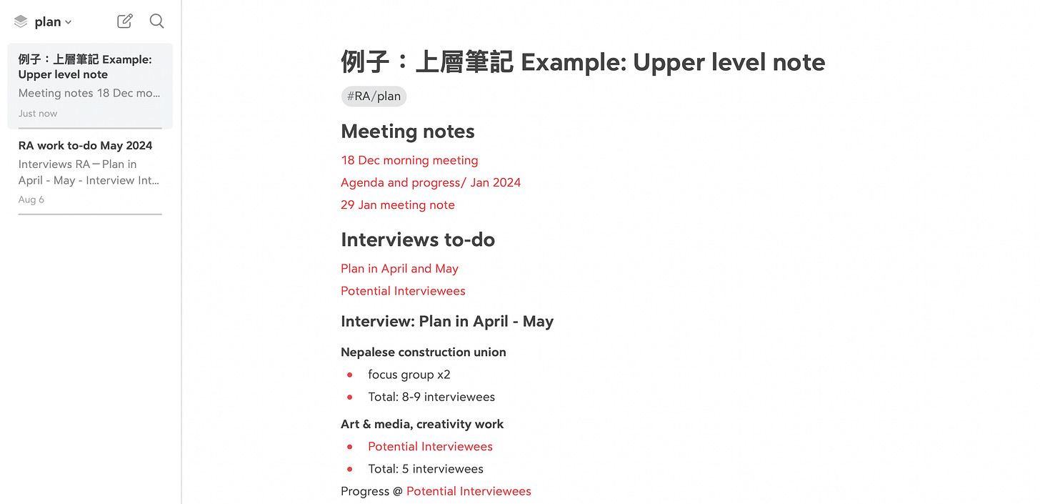 我最喜愛的是Todo一項,任何一份筆記只要有一個剔格,自動會變成待辦事項,並在Todo當中搜到。有時善忘,或者未進入工作狀態,只要一鍵就可以跳轉到待辦事項,先做好之前就列出了的工作。